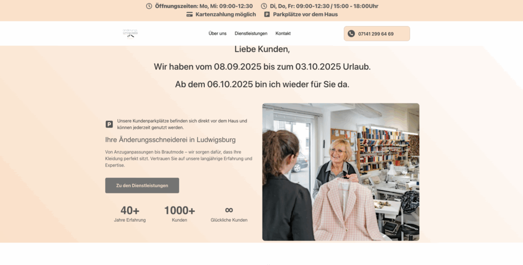 Kein Problem – du kannst später jederzeit Änderungen vornehmen. Unser System ist flexibel, sodass du Inhalte, Bilder oder Texte selbst anpassen kannst, ohne auf uns angewiesen zu sein.